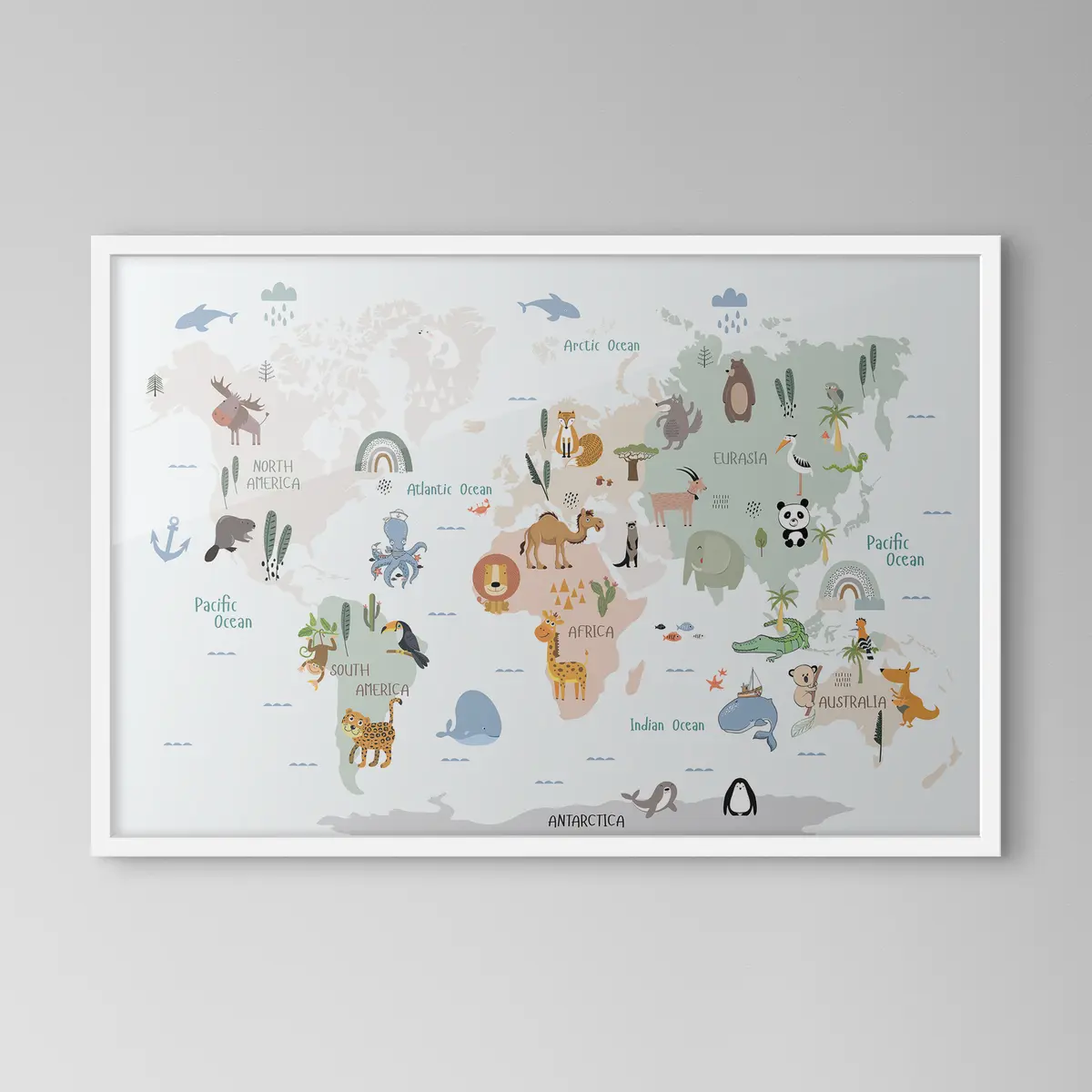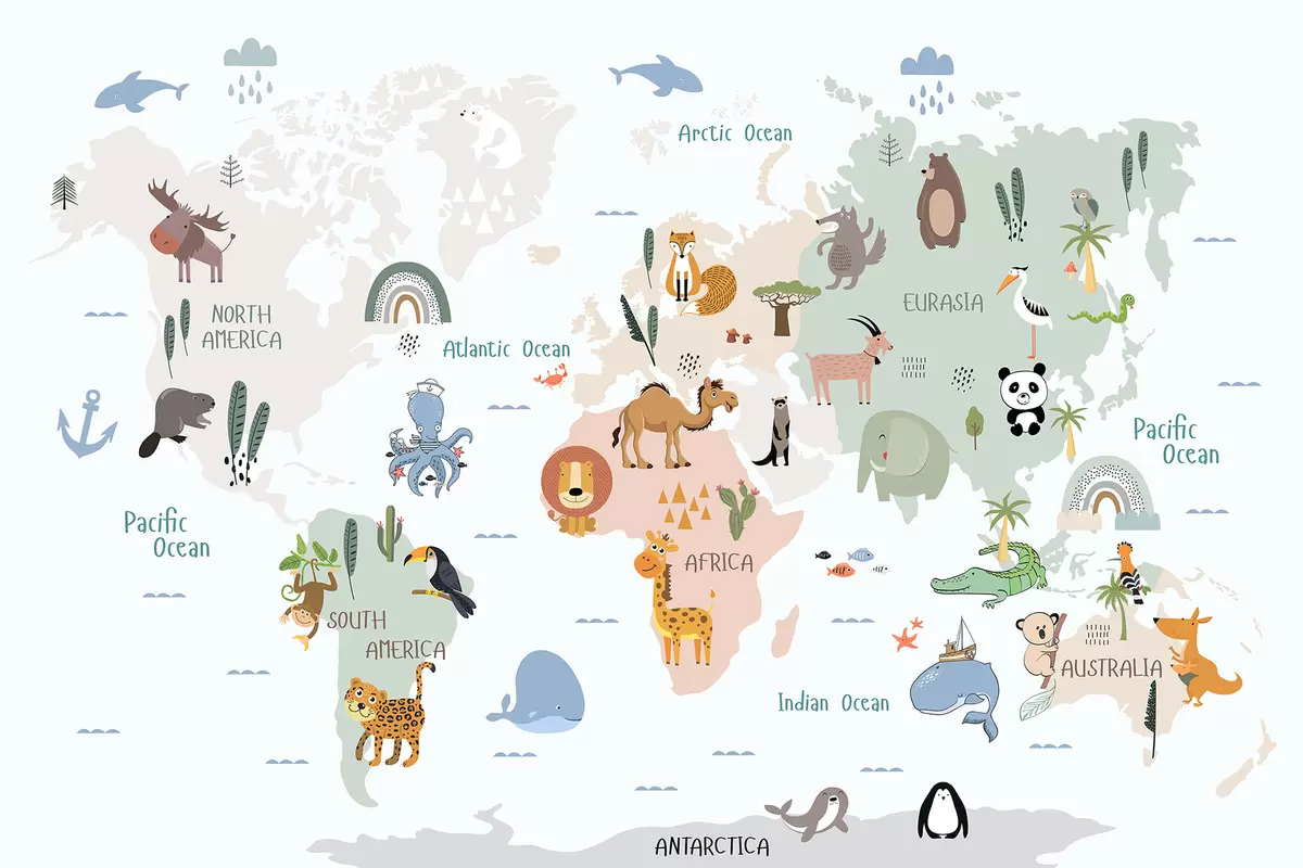 Poster Verspielte Illustration einer Tierweltkarte Nr f32082
