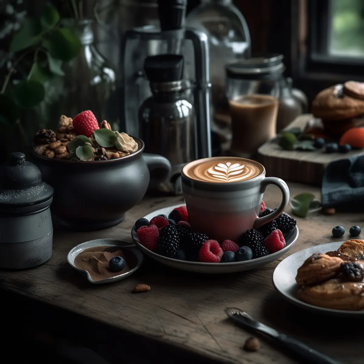 Poster Gemütlicher Morgen mit Kaffee und Beeren Nr f32154