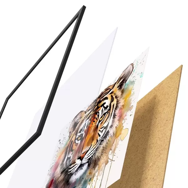 Das Poster besteht aus einem Rahmen, Plexiglas, einem gedruckten Bild und einer Rückwand aus Spanplatten. Dank der Halterungen auf der Rückseite kann das Poster sofort an die Wand gehängt werden.