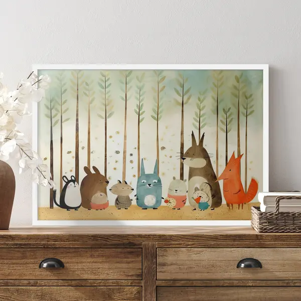 Poster Verspielte Freunde bei einem Treffen im Wald Nr f32802
