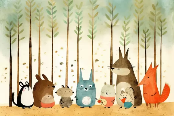 Poster Verspielte Freunde bei einem Treffen im Wald Nr f32802
