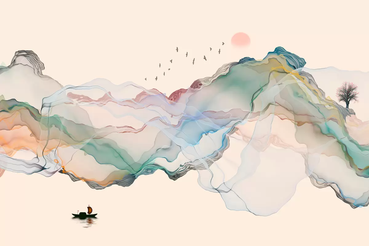 Poster Gelassene Reise durch bunte Landschaften Nr f32936