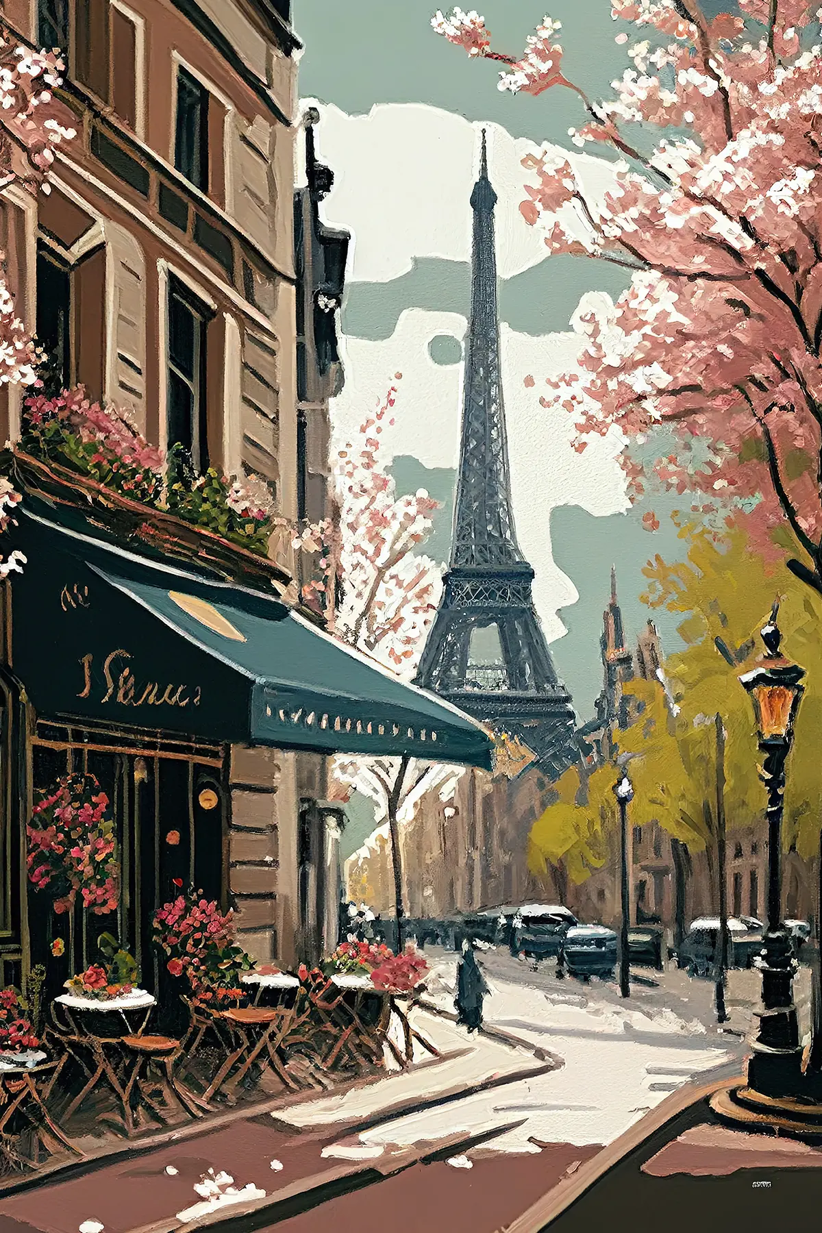 Poster Charmante Pariser Straße im Frühling Nr f33523