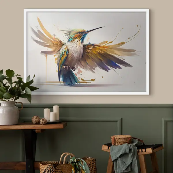 Poster Lebhafter Vogel in dynamischer Flugpose f33552