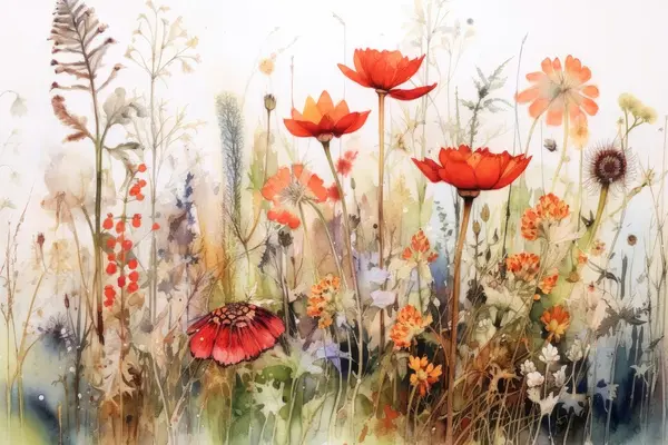 Poster Lebendige Blüten in sanften Aquarelltönen Nr f33675