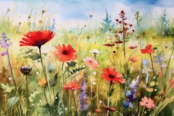 Poster Lebendige Blüten auf einer sonnigen Wiese Nr f33680