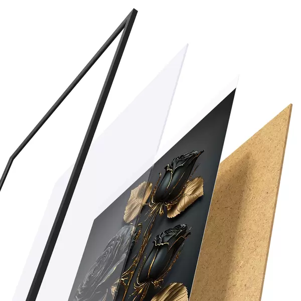 Das Poster besteht aus einem Rahmen, Plexiglas, einem gedruckten Bild und einer Rückwand aus Spanplatten. Dank der Halterungen auf der Rückseite kann das Poster sofort an die Wand gehängt werden.
