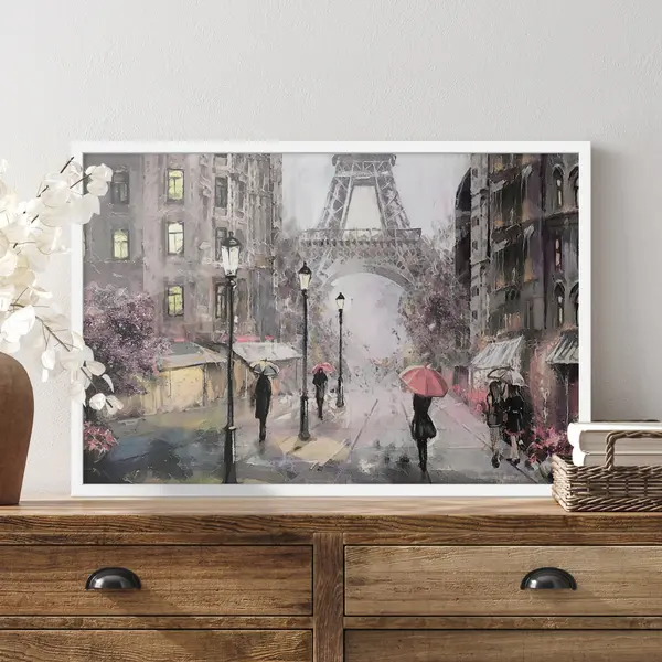 Poster Regnerischer Spaziergang in der Nähe des Eiffelturms f33719