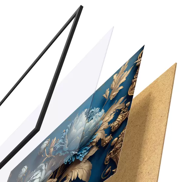 Das Poster besteht aus einem Rahmen, Plexiglas, einem gedruckten Bild und einer Rückwand aus Spanplatten. Dank der Halterungen auf der Rückseite kann das Poster sofort an die Wand gehängt werden.