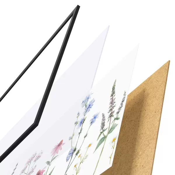 Das Poster besteht aus einem Rahmen, Plexiglas, einem gedruckten Bild und einer Rückwand aus Spanplatten. Dank der Halterungen auf der Rückseite kann das Poster sofort an die Wand gehängt werden.
