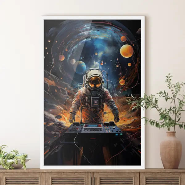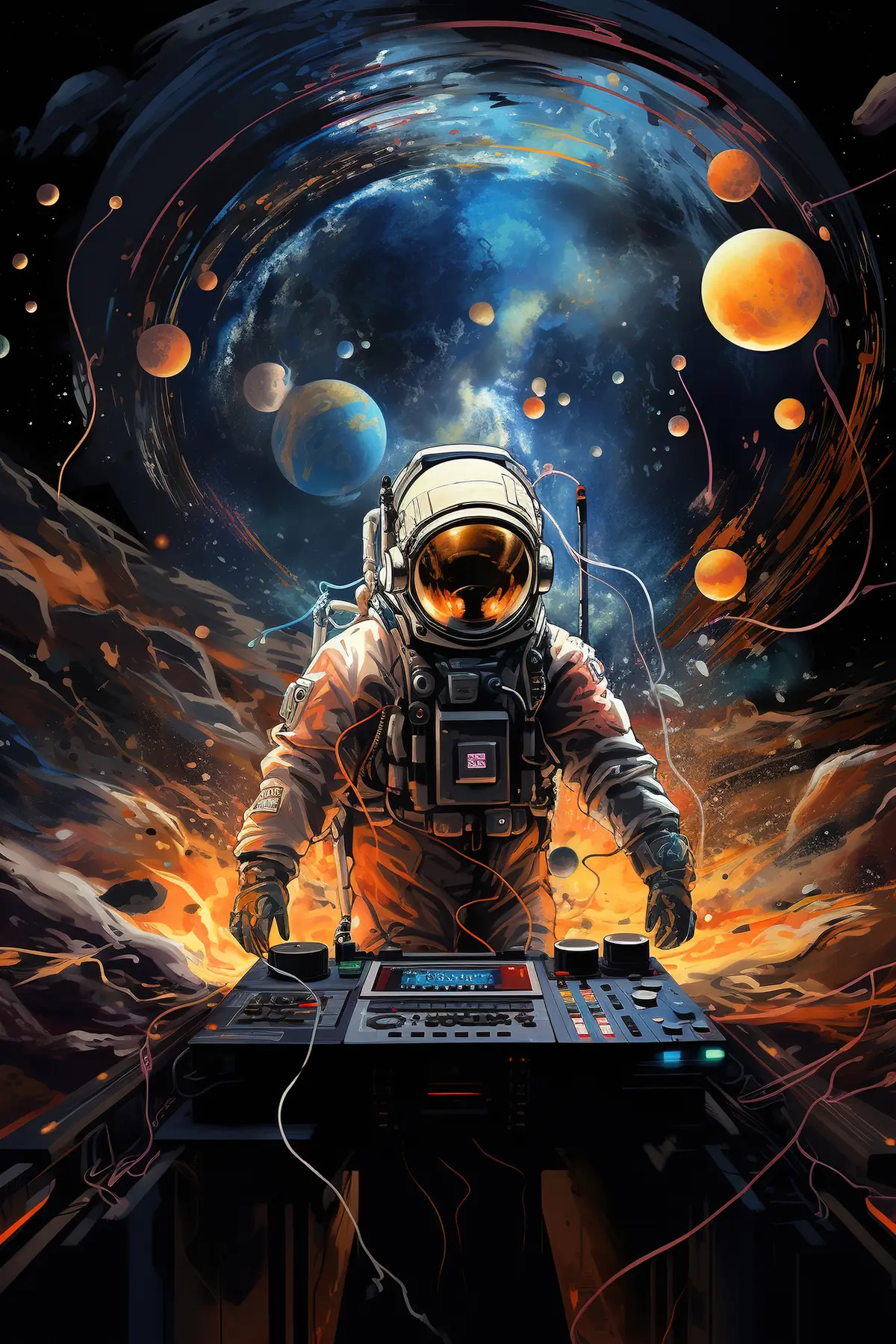 Poster Astronaut navigiert durch kosmische Schallwellen f34216