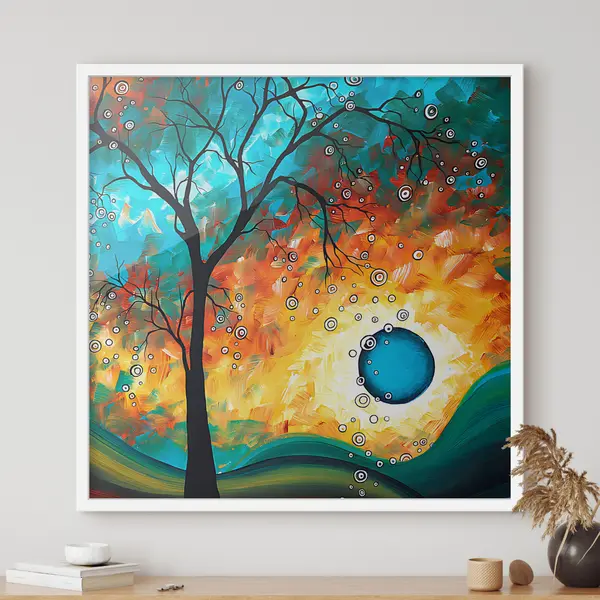 Poster Lebendiger Sonnenuntergang hinter kahlen Ästen Nr f34434