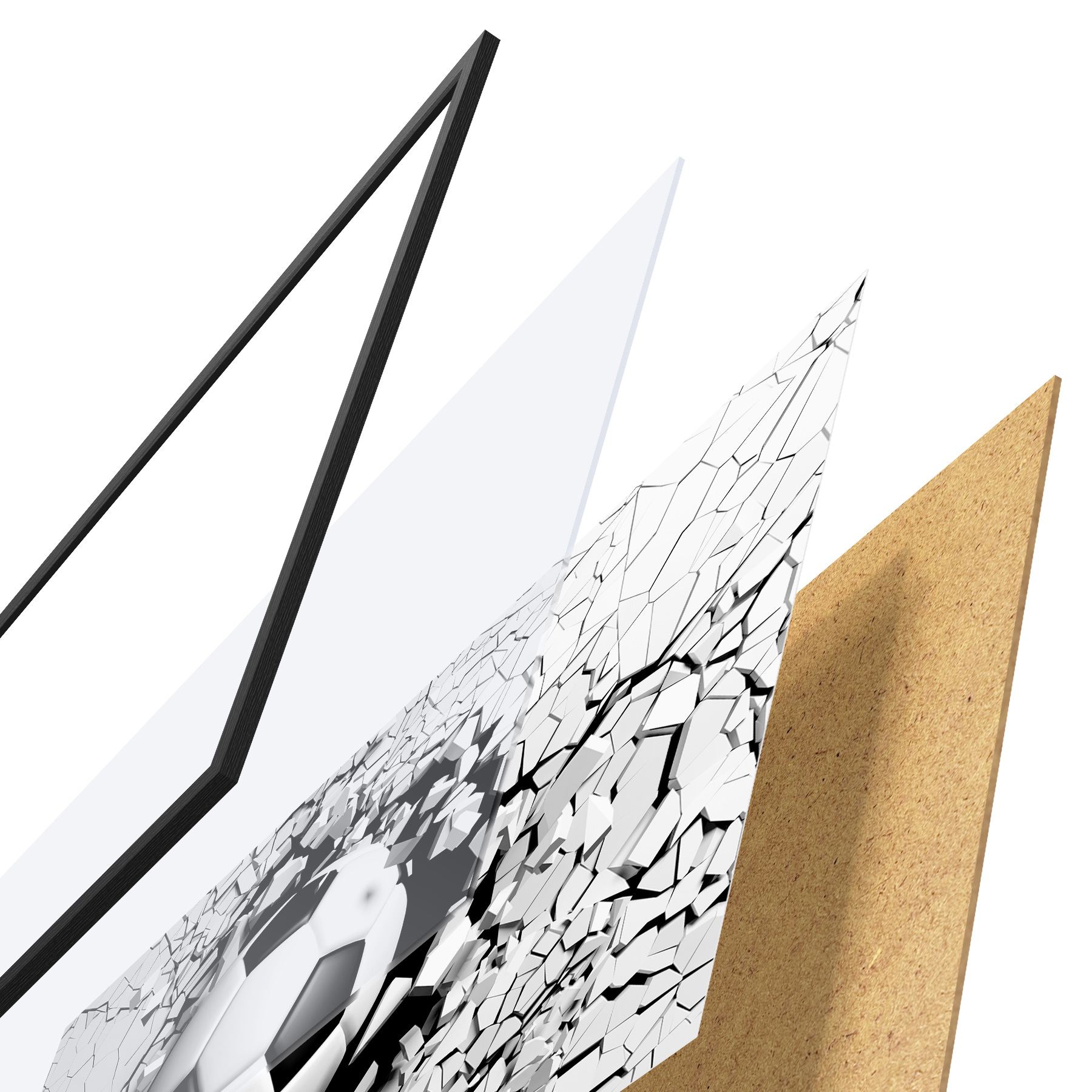Das Poster besteht aus einem Rahmen, Plexiglas, einem gedruckten Bild und einer Rückwand aus Spanplatten. Dank der Halterungen auf der Rückseite kann das Poster sofort an die Wand gehängt werden.