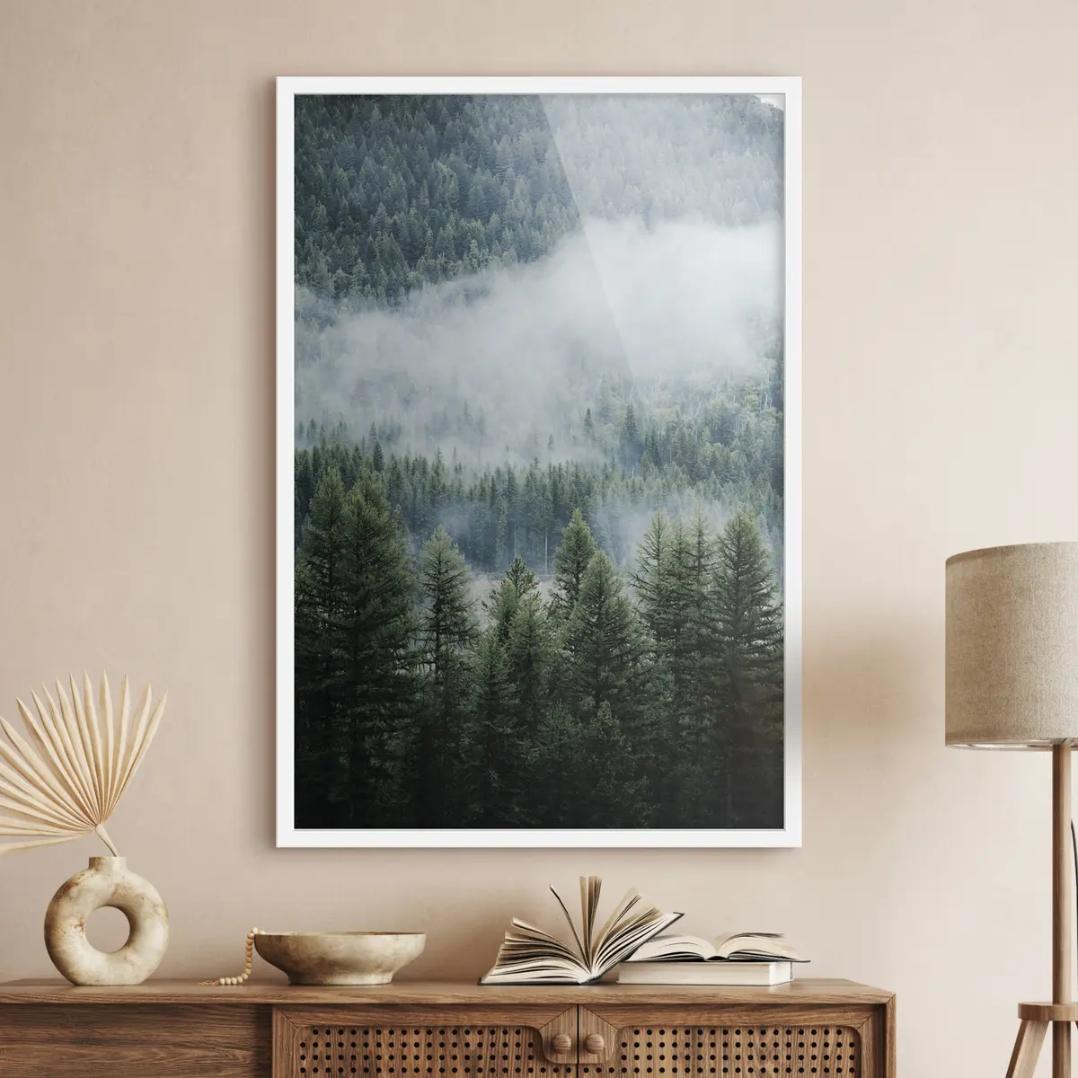 Poster Nebliger Wald unter einem heiteren Himmel f34825