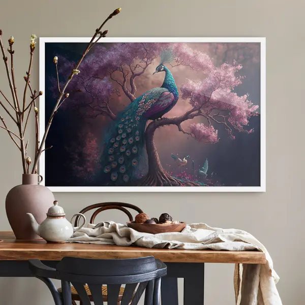Poster Pfau zwischen blühenden Kirschblüten Nr f34875