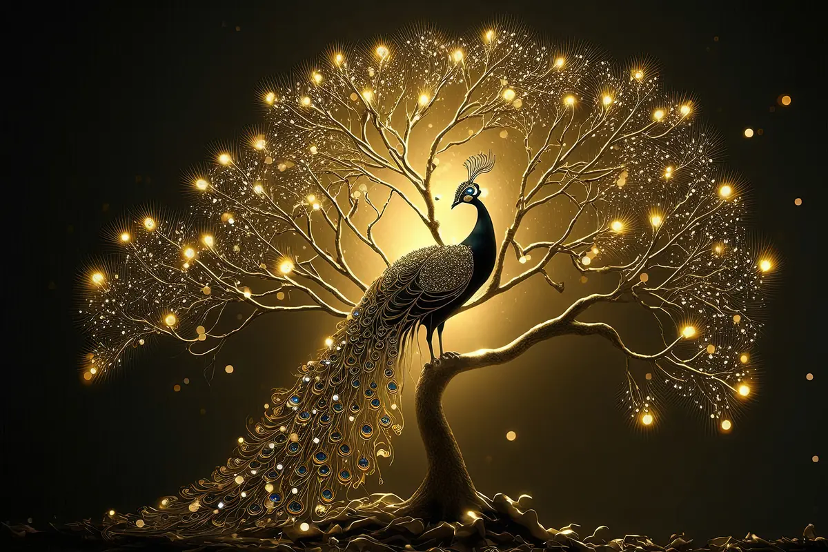 Poster Ein schöner Pfau vor dunklem Hintergrund Nr f34876