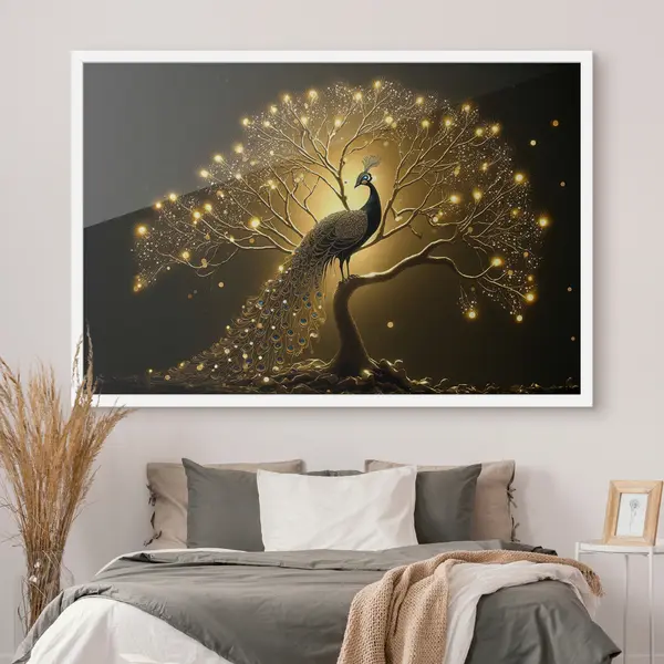 Poster Ein schöner Pfau vor dunklem Hintergrund f34876