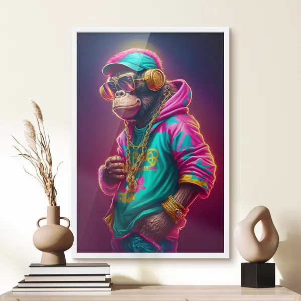 Poster Stilvoller Primat in lebhafter Kleidung Nr f34891