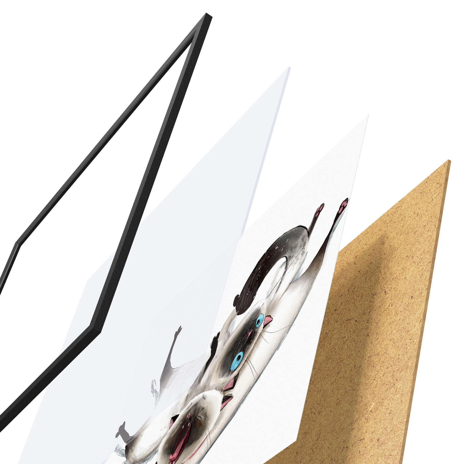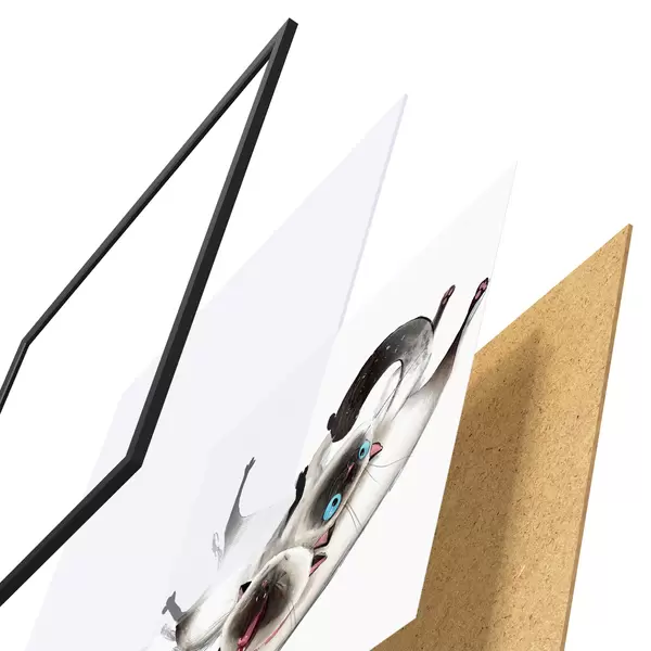 Das Poster besteht aus einem Rahmen, Plexiglas, einem gedruckten Bild und einer Rückwand aus Spanplatten. Dank der Halterungen auf der Rückseite kann das Poster sofort an die Wand gehängt werden.