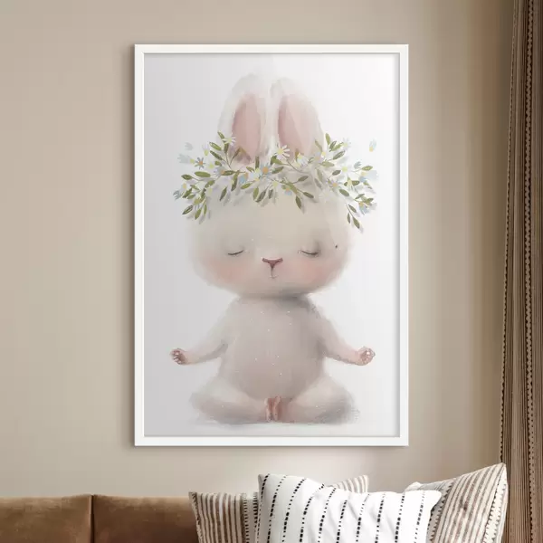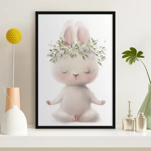 Poster Meditierender Hase mit Blumenkranz Nr f35005