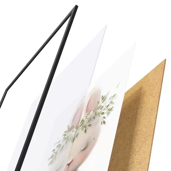 Das Poster besteht aus einem Rahmen, Plexiglas, einem gedruckten Bild und einer Rückwand aus Spanplatten. Dank der Halterungen auf der Rückseite kann das Poster sofort an die Wand gehängt werden.