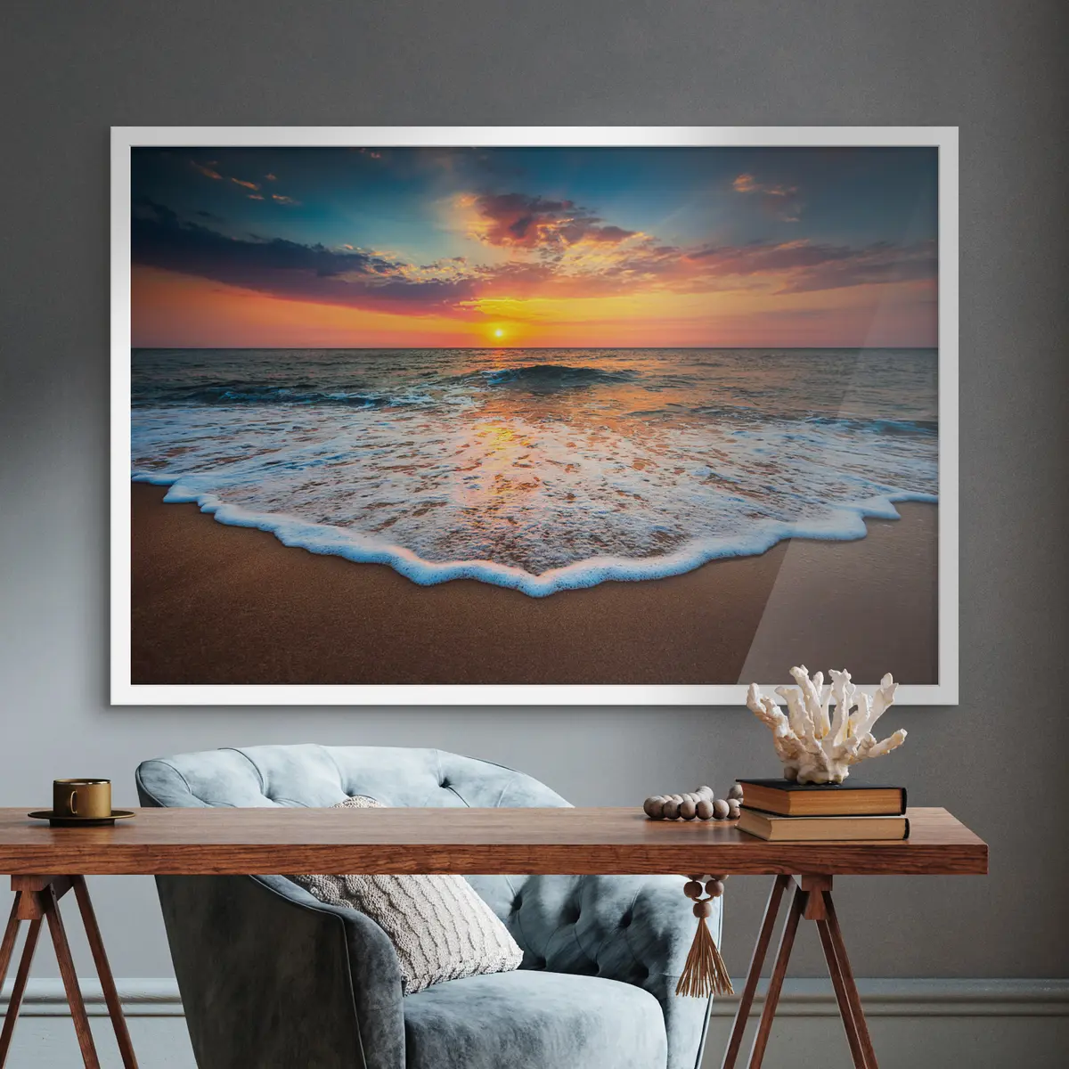 Poster Sonnenuntergang, der sich in sanften Wellen spiegelt Nr f35166