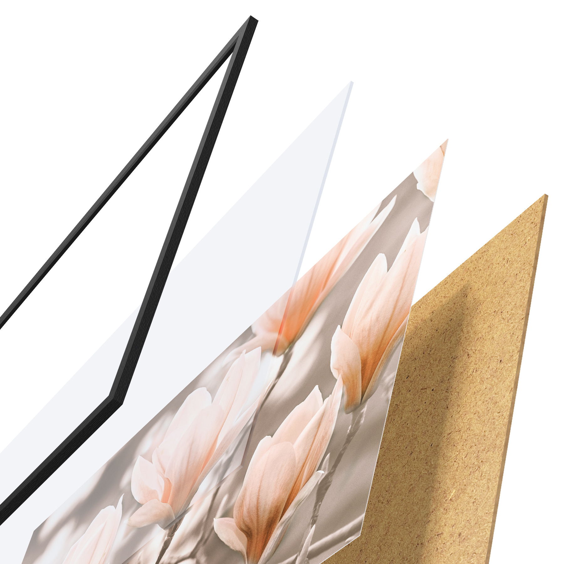 Das Poster besteht aus einem Rahmen, Plexiglas, einem gedruckten Bild und einer Rückwand aus Spanplatten. Dank der Halterungen auf der Rückseite kann das Poster sofort an die Wand gehängt werden.