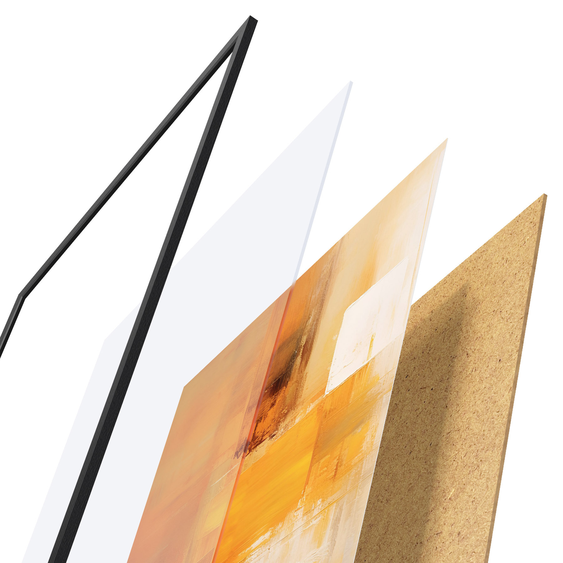 Das Poster besteht aus einem Rahmen, Plexiglas, einem gedruckten Bild und einer Rückwand aus Spanplatten. Dank der Halterungen auf der Rückseite kann das Poster sofort an die Wand gehängt werden.