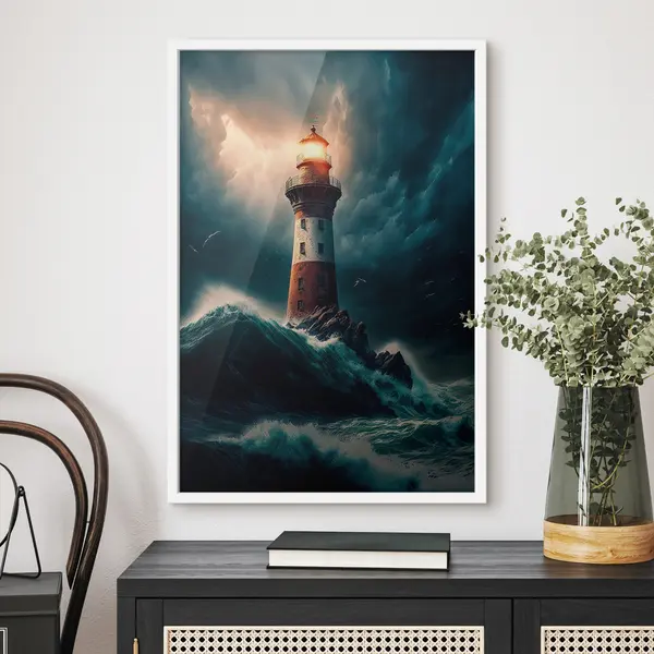 Poster Leuchtfeuer, das durch stürmische Gewässer führt Nr f35349