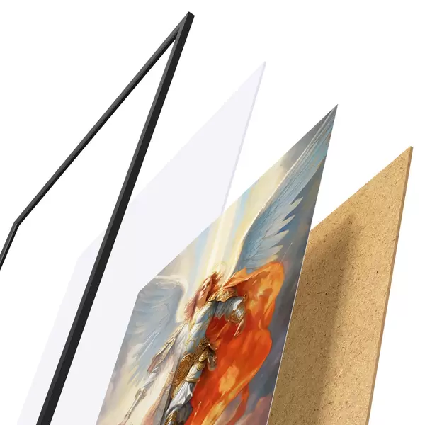 Das Poster besteht aus einem Rahmen, Plexiglas, einem gedruckten Bild und einer Rückwand aus Spanplatten. Dank der Halterungen auf der Rückseite kann das Poster sofort an die Wand gehängt werden.