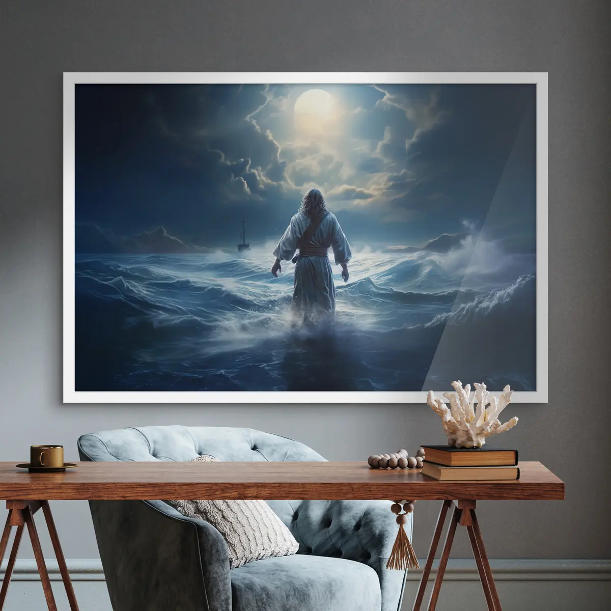 Poster Nachts auf unruhigem Wasser wandern Nr f35357