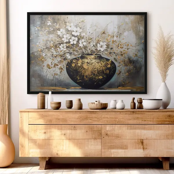 Poster Elegante Vase, geschmückt mit leuchtenden Blüten f35377