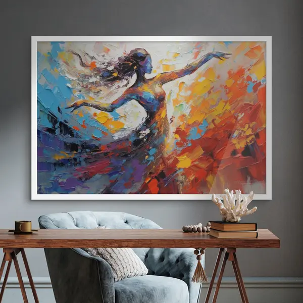 Poster Tänzerin, die lebhafte Farben und Bewegung umarmt f35379
