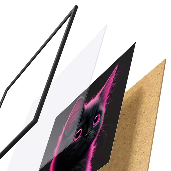 Das Poster besteht aus einem Rahmen, Plexiglas, einem gedruckten Bild und einer Rückwand aus Spanplatten. Dank der Halterungen auf der Rückseite kann das Poster sofort an die Wand gehängt werden.