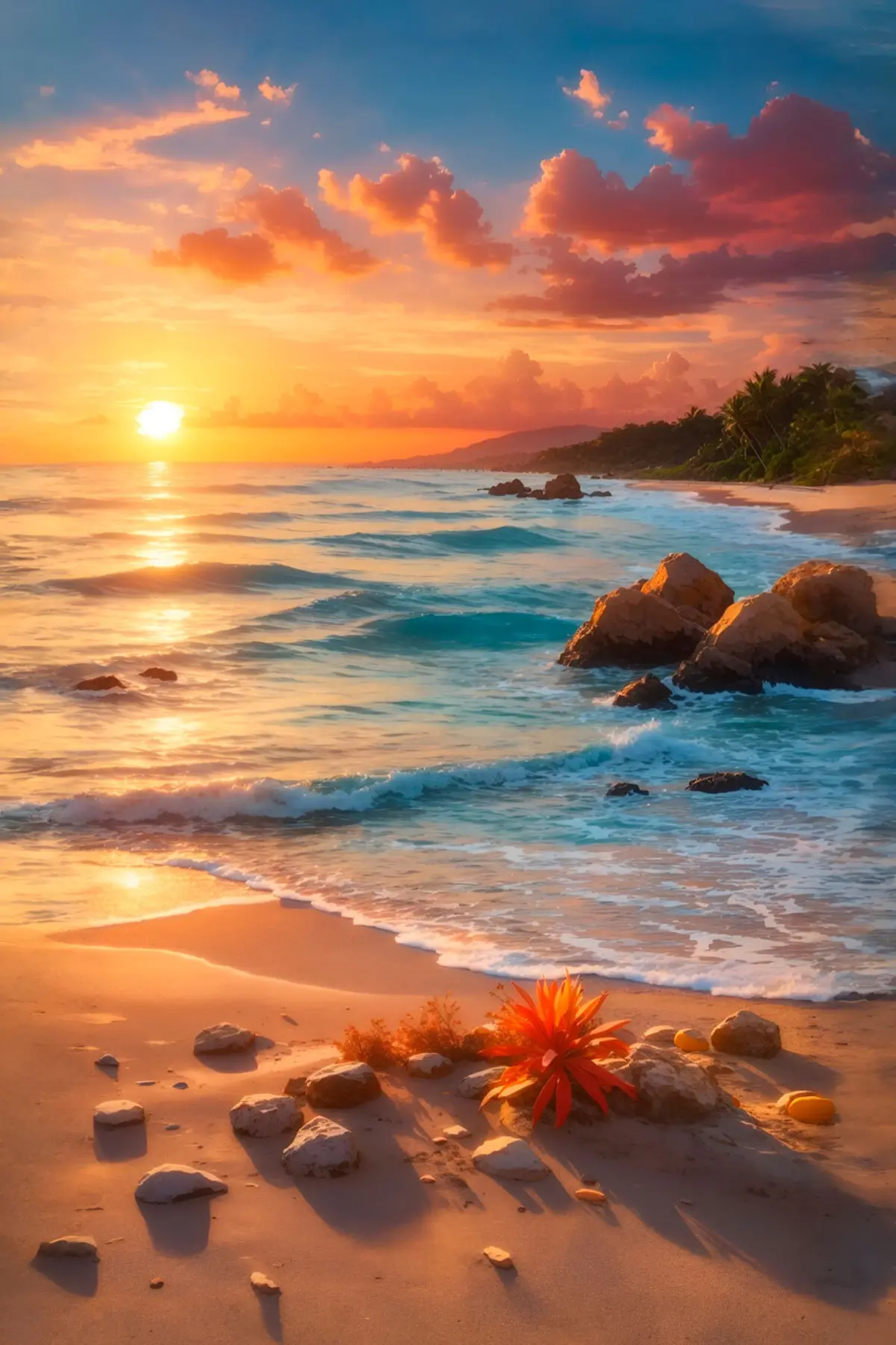 Poster Ruhiger Sonnenuntergang über einer friedlichen Strandlandschaft Nr f35647