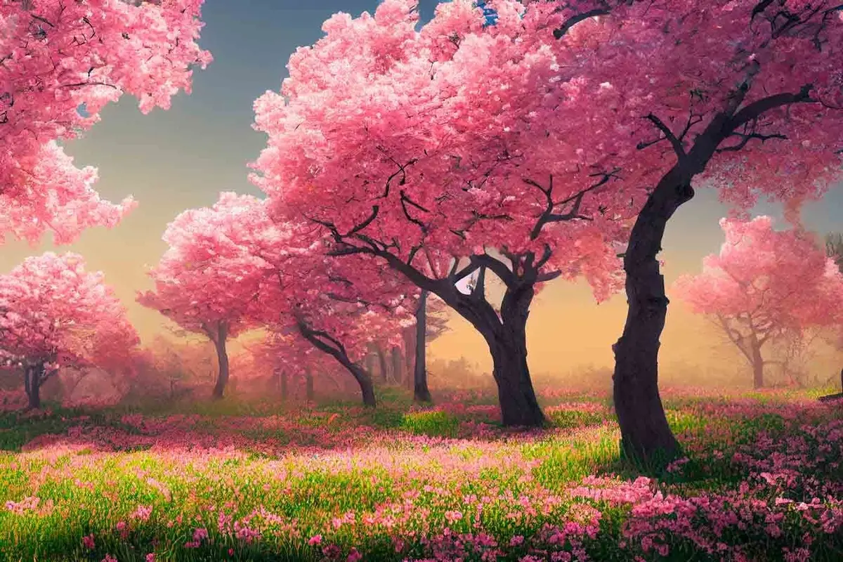 Poster Blühende Bäume in leuchtenden Frühlingsfarben Nr f35703