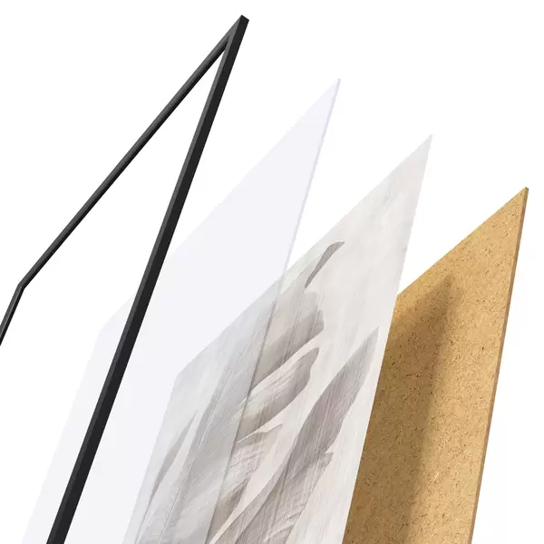 Das Poster besteht aus einem Rahmen, Plexiglas, einem gedruckten Bild und einer Rückwand aus Spanplatten. Dank der Halterungen auf der Rückseite kann das Poster sofort an die Wand gehängt werden.