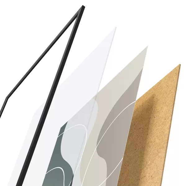Das Poster besteht aus einem Rahmen, Plexiglas, einem gedruckten Bild und einer Rückwand aus Spanplatten. Dank der Halterungen auf der Rückseite kann das Poster sofort an die Wand gehängt werden.