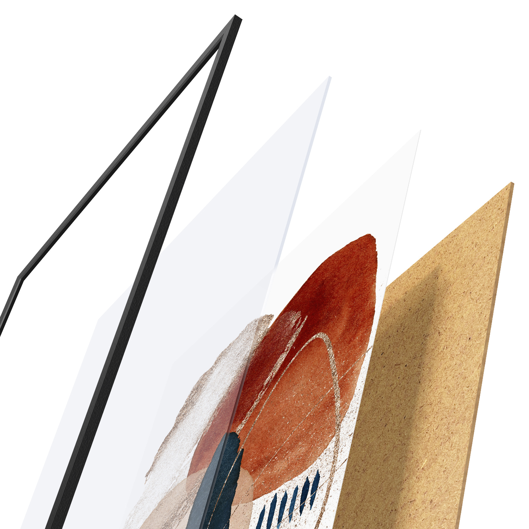 Das Poster besteht aus einem Rahmen, Plexiglas, einem gedruckten Bild und einer Rückwand aus Spanplatten. Dank der Halterungen auf der Rückseite kann das Poster sofort an die Wand gehängt werden.
