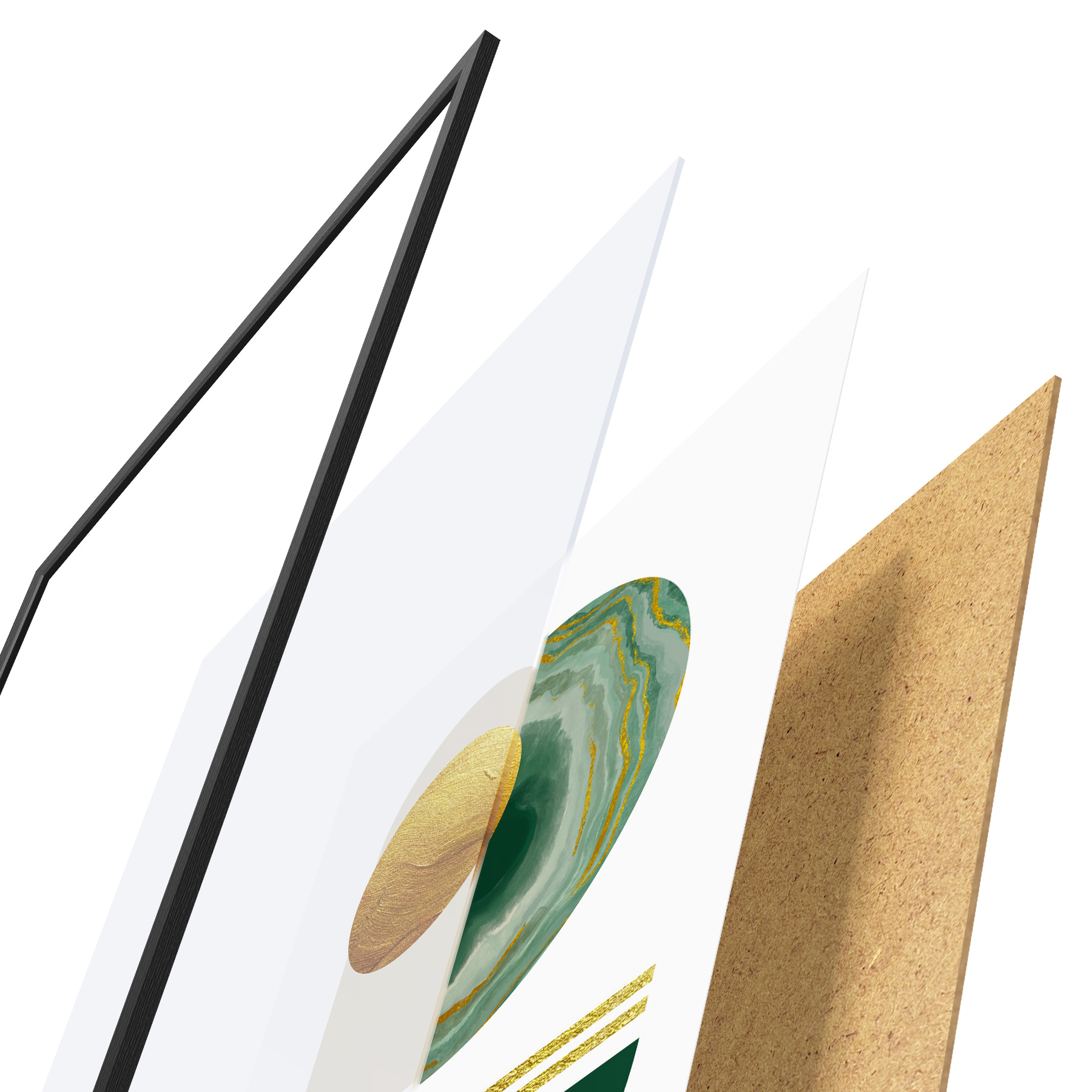 Das Poster besteht aus einem Rahmen, Plexiglas, einem gedruckten Bild und einer Rückwand aus Spanplatten. Dank der Halterungen auf der Rückseite kann das Poster sofort an die Wand gehängt werden.