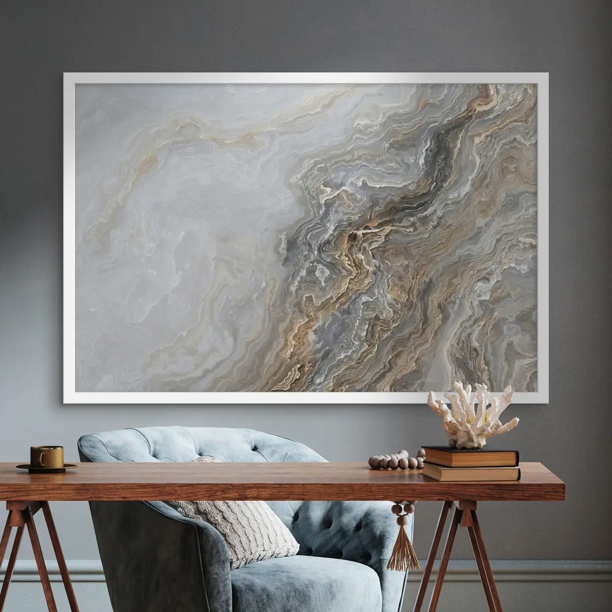 Das Poster besteht aus einem Rahmen, Plexiglas, einem gedruckten Bild und einer Rückwand aus Spanplatten. Dank der Halterungen auf der Rückseite kann das Poster sofort an die Wand gehängt werden.