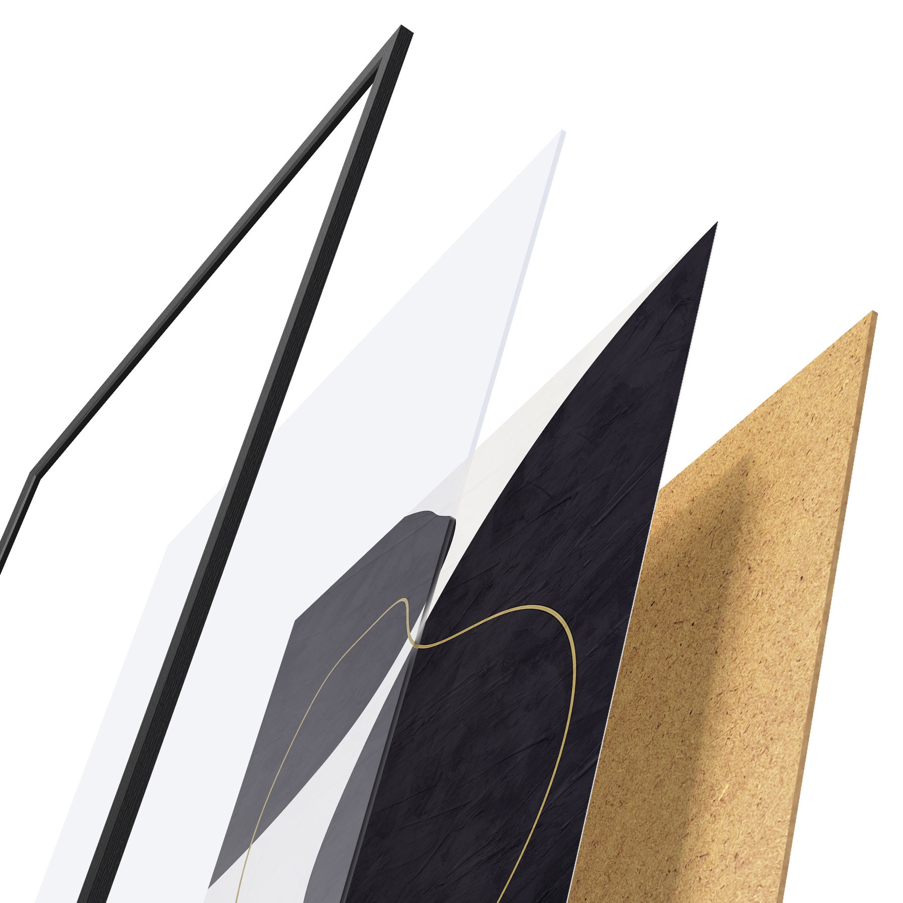 Das Poster besteht aus einem Rahmen, Plexiglas, einem gedruckten Bild und einer Rückwand aus Spanplatten. Dank der Halterungen auf der Rückseite kann das Poster sofort an die Wand gehängt werden.