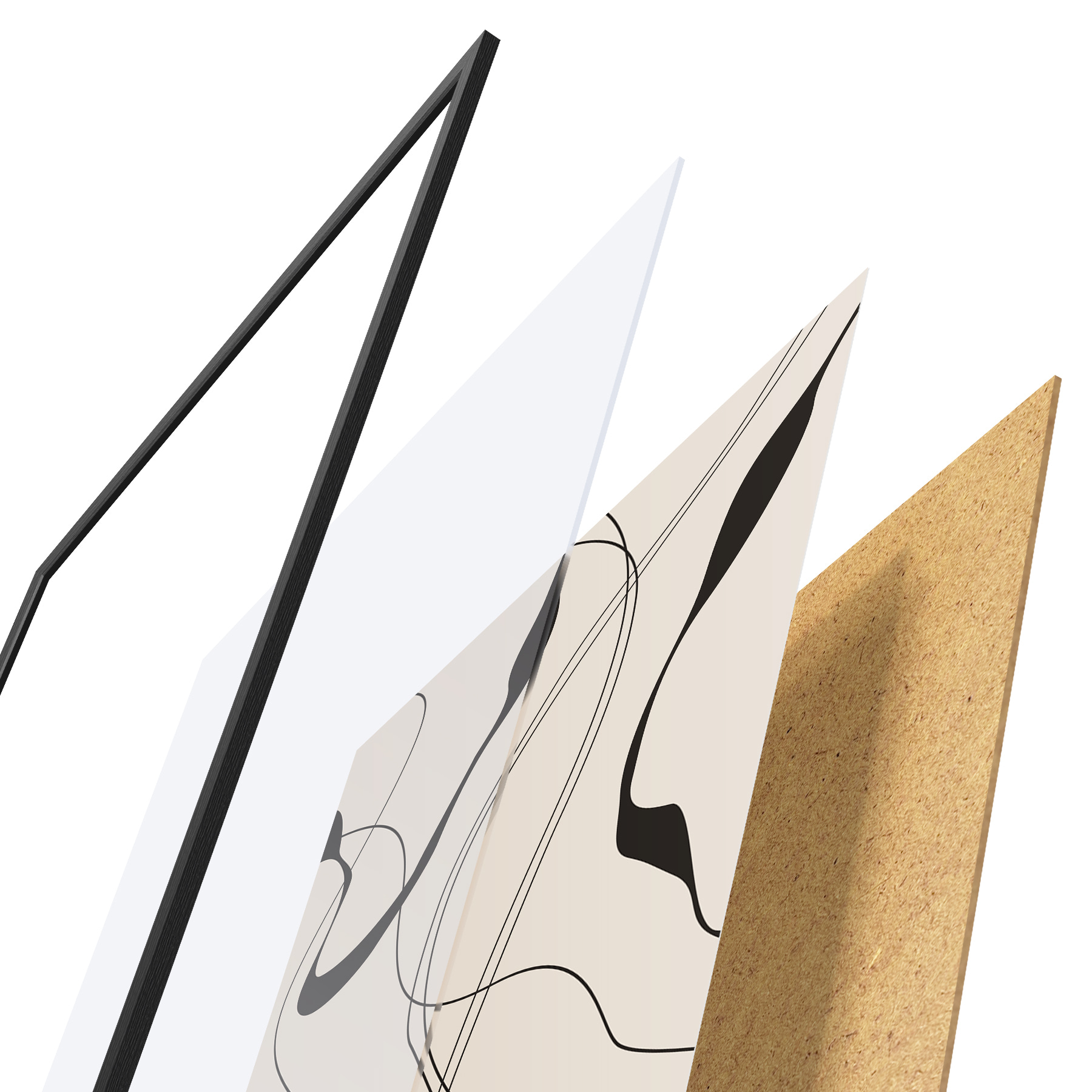 Das Poster besteht aus einem Rahmen, Plexiglas, einem gedruckten Bild und einer Rückwand aus Spanplatten. Dank der Halterungen auf der Rückseite kann das Poster sofort an die Wand gehängt werden.