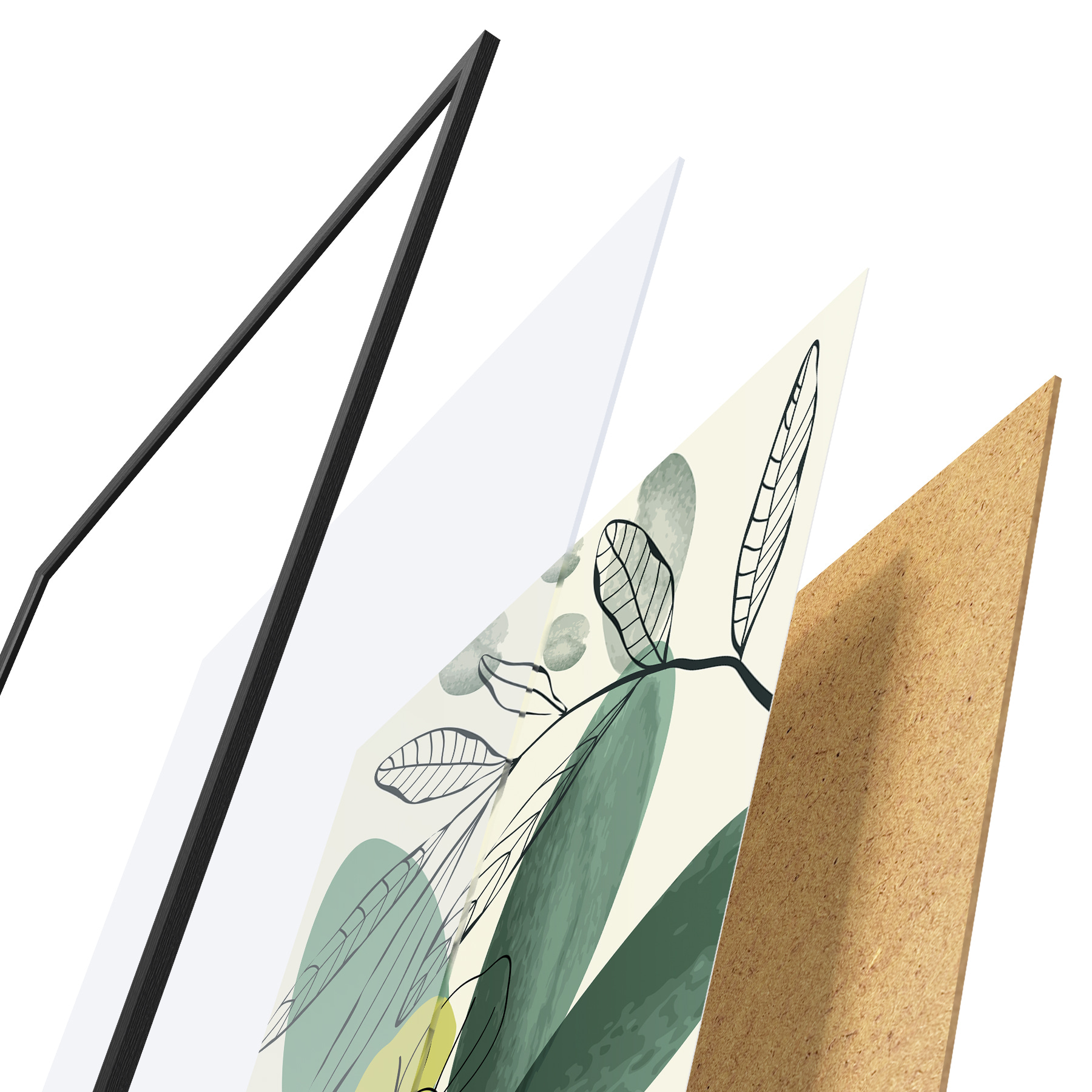 Das Poster besteht aus einem Rahmen, Plexiglas, einem gedruckten Bild und einer Rückwand aus Spanplatten. Dank der Halterungen auf der Rückseite kann das Poster sofort an die Wand gehängt werden.