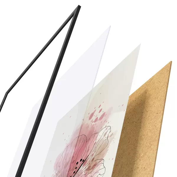 Das Poster besteht aus einem Rahmen, Plexiglas, einem gedruckten Bild und einer Rückwand aus Spanplatten. Dank der Halterungen auf der Rückseite kann das Poster sofort an die Wand gehängt werden.