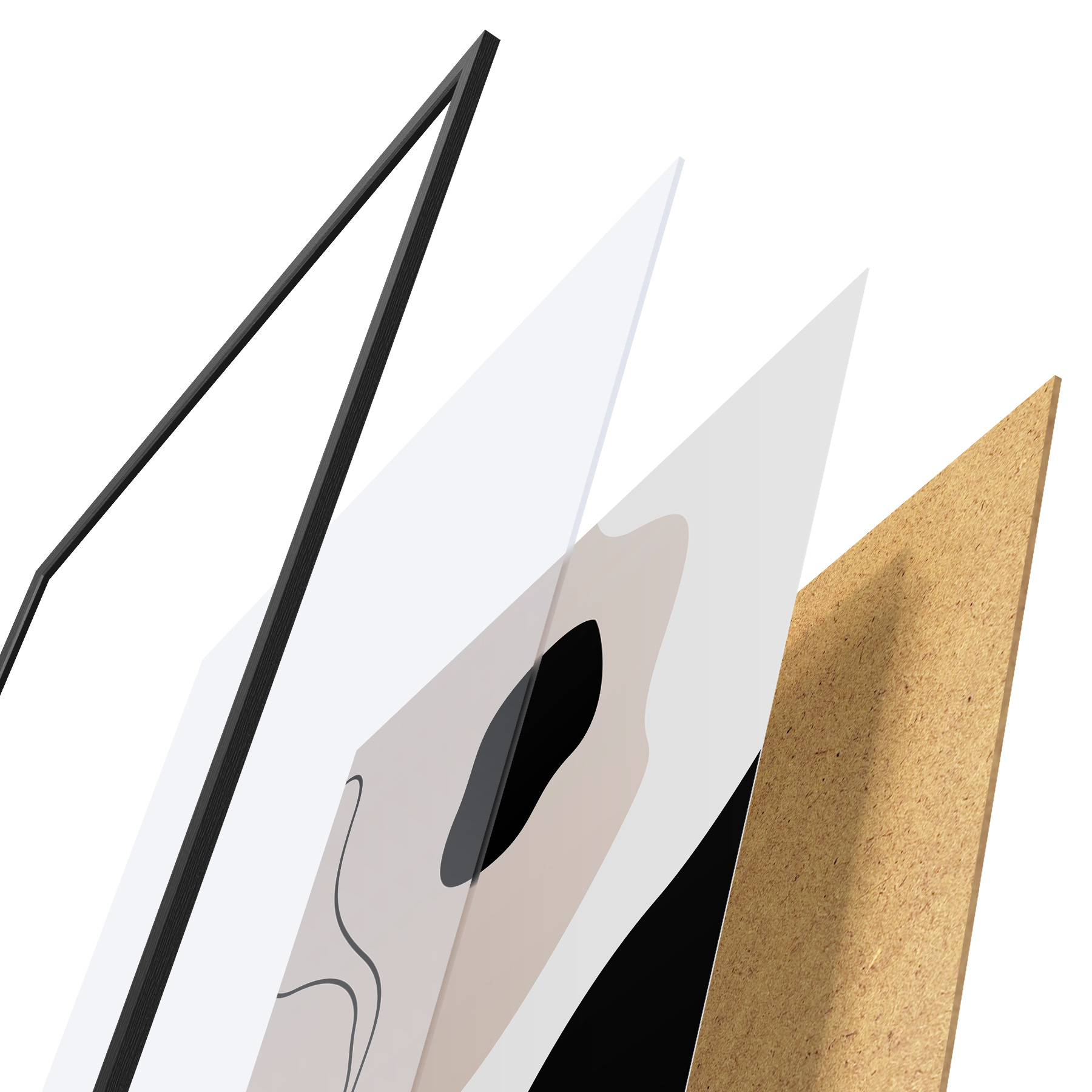 Das Poster besteht aus einem Rahmen, Plexiglas, einem gedruckten Bild und einer Rückwand aus Spanplatten. Dank der Halterungen auf der Rückseite kann das Poster sofort an die Wand gehängt werden.