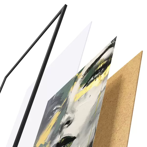 Das Poster besteht aus einem Rahmen, Plexiglas, einem gedruckten Bild und einer Rückwand aus Spanplatten. Dank der Halterungen auf der Rückseite kann das Poster sofort an die Wand gehängt werden.