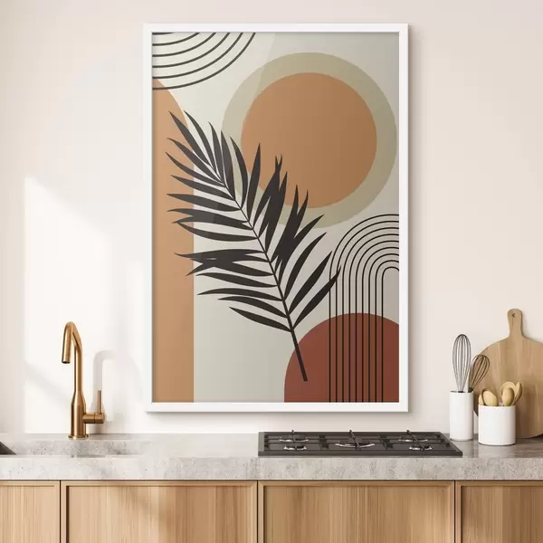 Poster Palmenblatt auf einem geometrischen Hintergrund Nr f36170