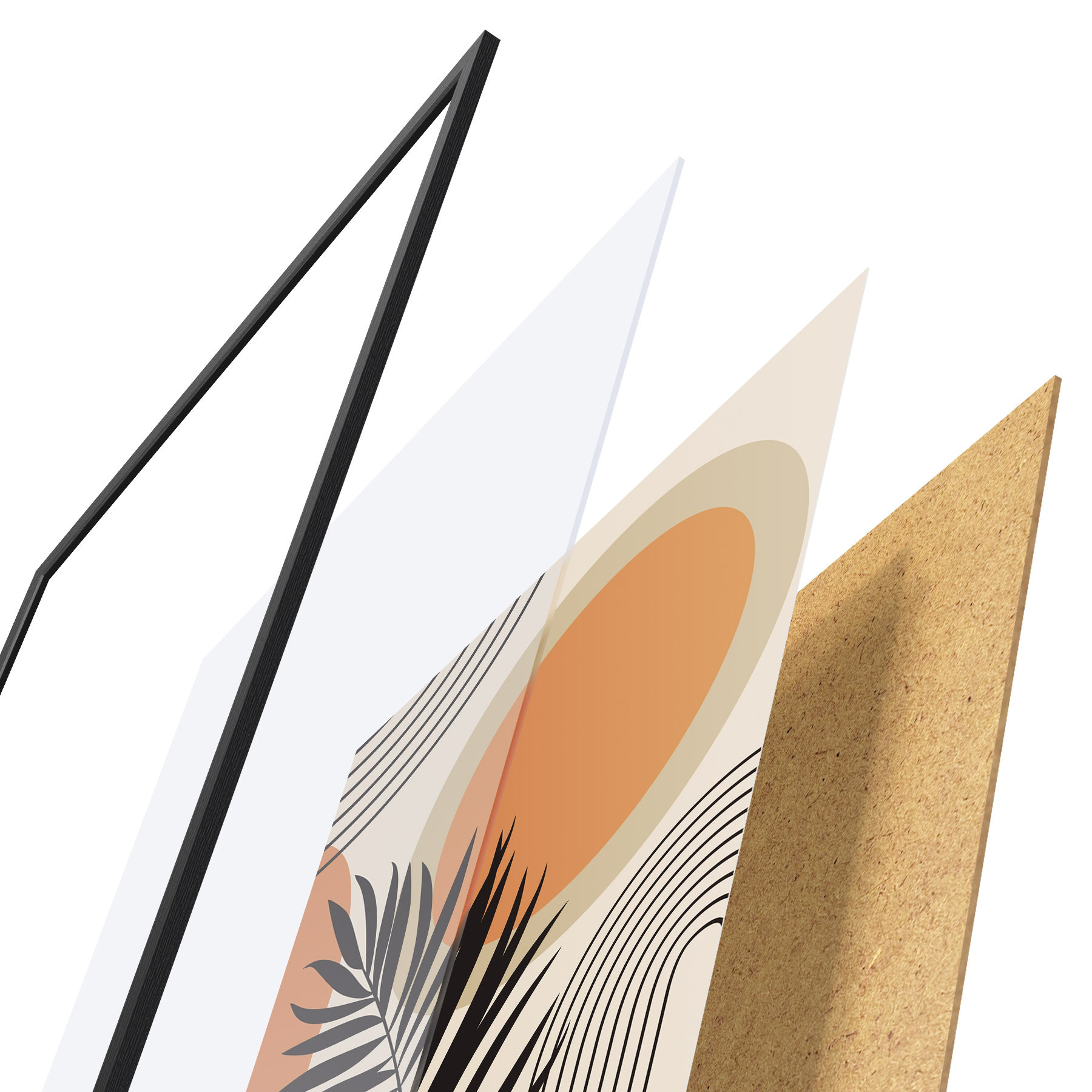 Das Poster besteht aus einem Rahmen, Plexiglas, einem gedruckten Bild und einer Rückwand aus Spanplatten. Dank der Halterungen auf der Rückseite kann das Poster sofort an die Wand gehängt werden.