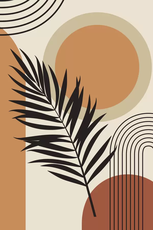 Poster Palmenblatt auf einem geometrischen Hintergrund Nr f36170